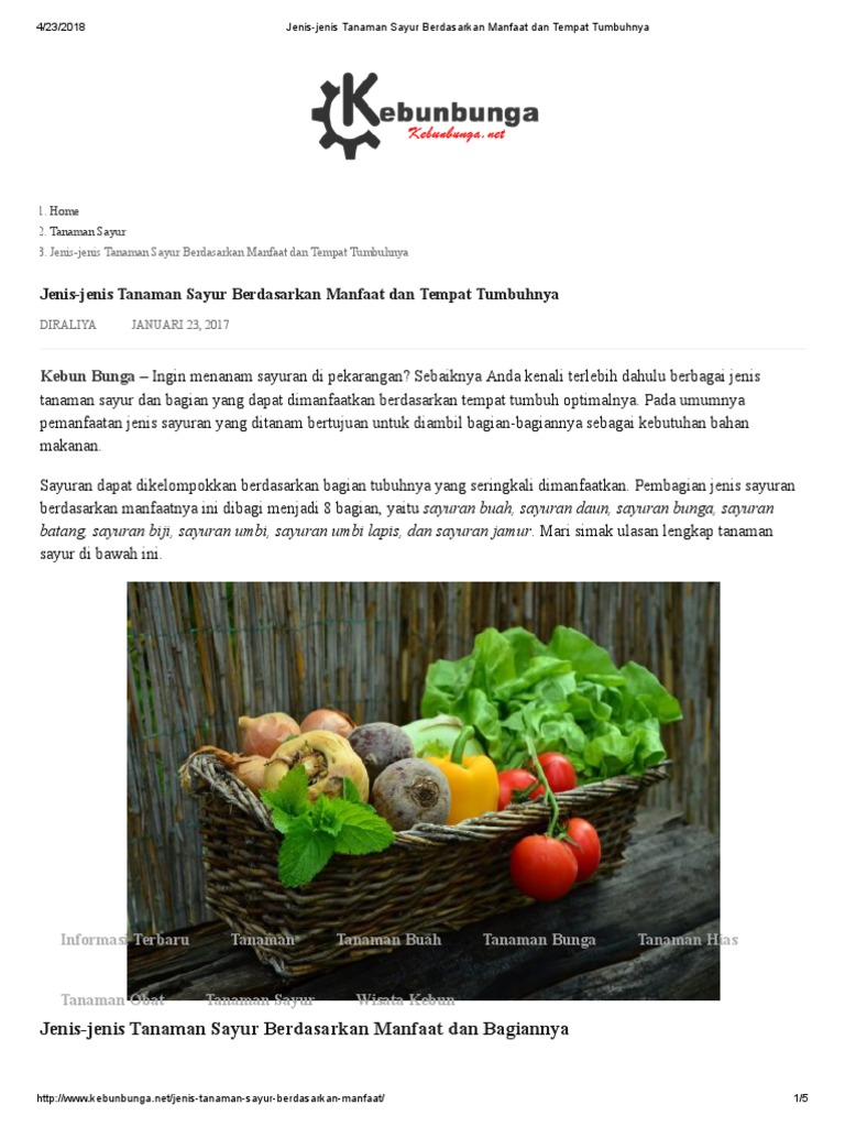 11 06 2022 · Indonesia sebagai negara agraris mencetuskan tanaman sayuran tumbuh dengan subur berdasarkan komponen tanaman sayuran yang dapat dimakan komponen akar root vegetables ialah 1
